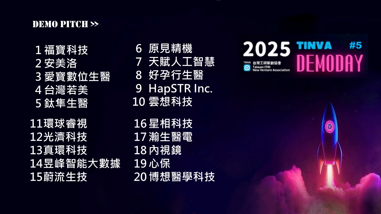 2025 TINVA Demo Day 年度 Top 20 上台 Pitch 的新創團隊名單,