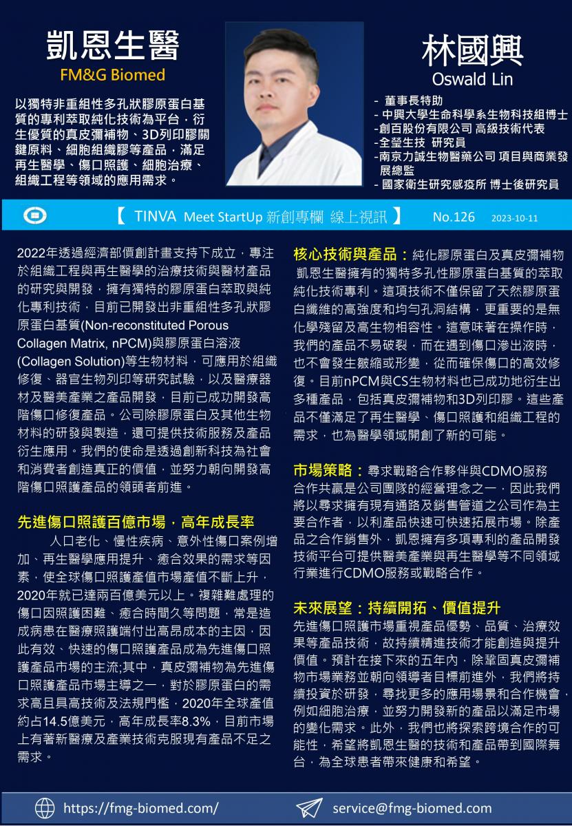 2023-10-18 【No.126. TINVA Meet StartUp 新創專欄 線上視訊】凱恩生醫FM&G Bio